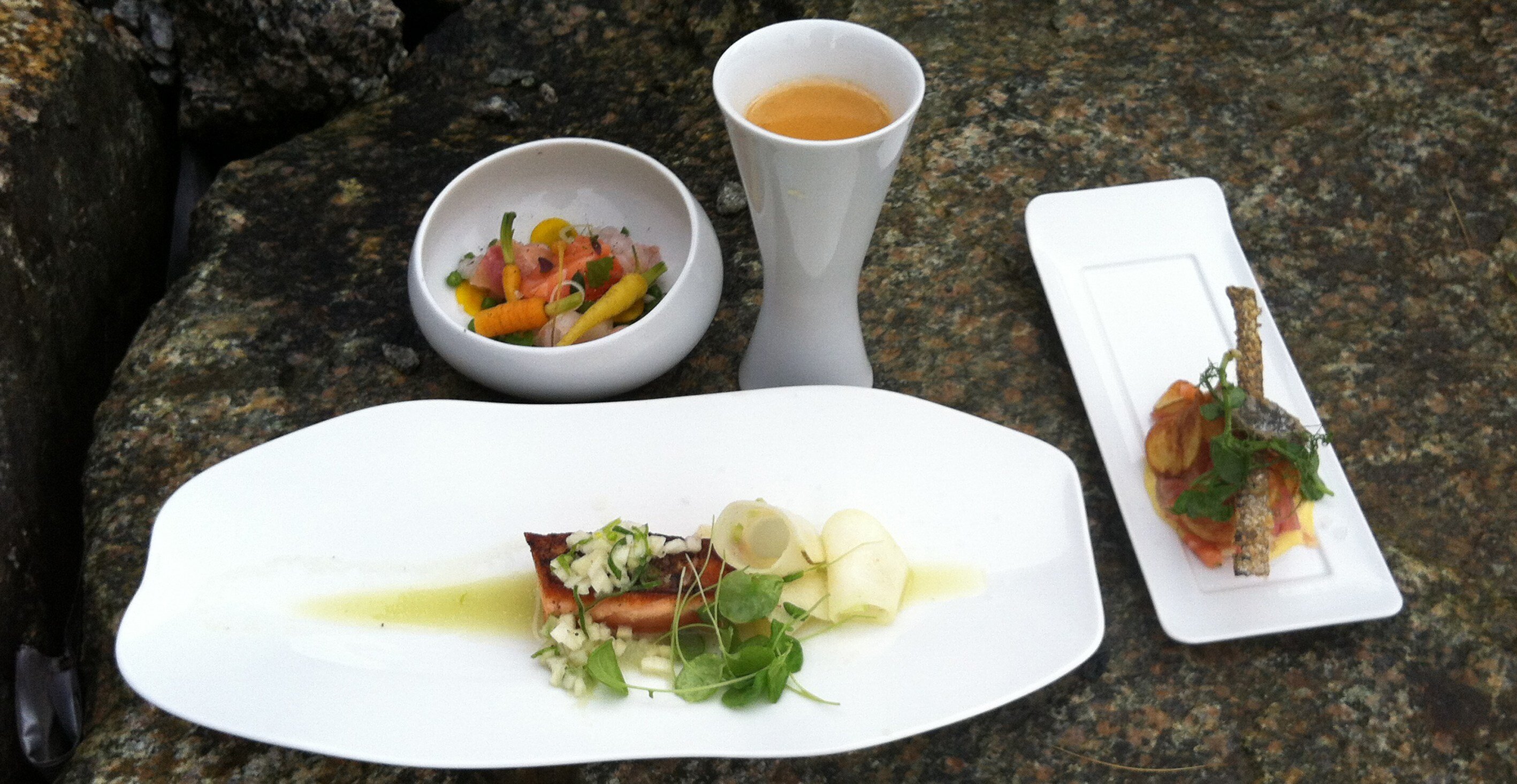 Kniver og kokker er skjerpet. Sistnevnte henter sine egne norske lakser rett fra merdene, og tilbereder den utendørs i november, på en liten kai i Rogaland.