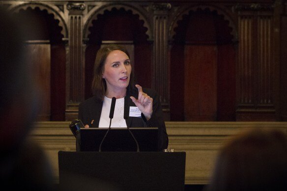 Ingrid Kristine Pettersen fra Norges sjømatråd holdt er foredrag under torskefiskkonferansen i London.