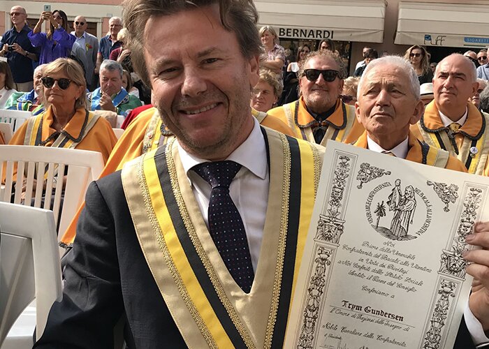 -Det er en tittel jeg tar på alvor og som gir inspirasjon til den jobben vi gjør med å fremme norsk tørrfisk i Italia, sier en beæret ridder Trym Eidem Gundersen.